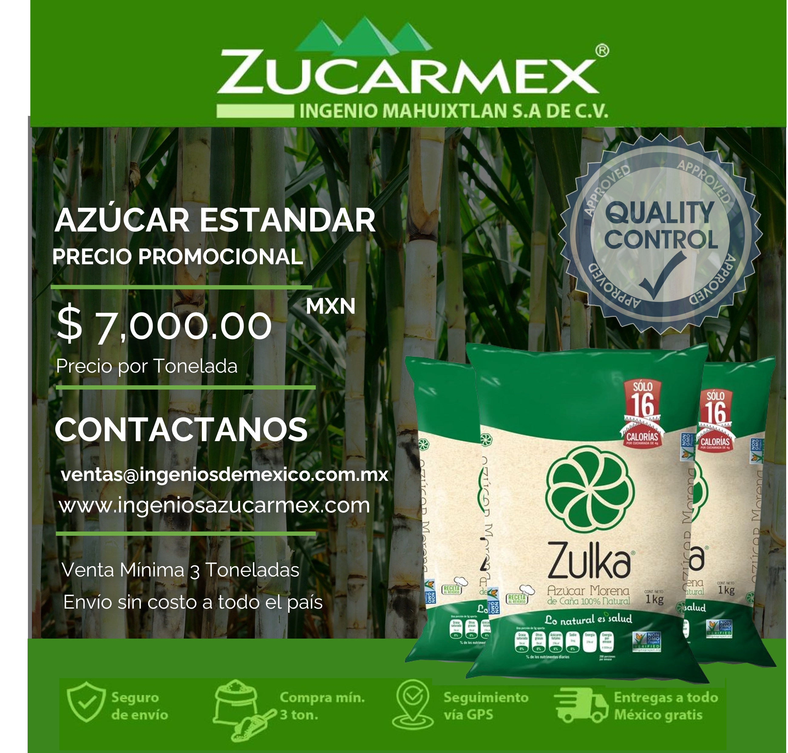 Azúcar Estandar $7,000.00MXN Ton.
