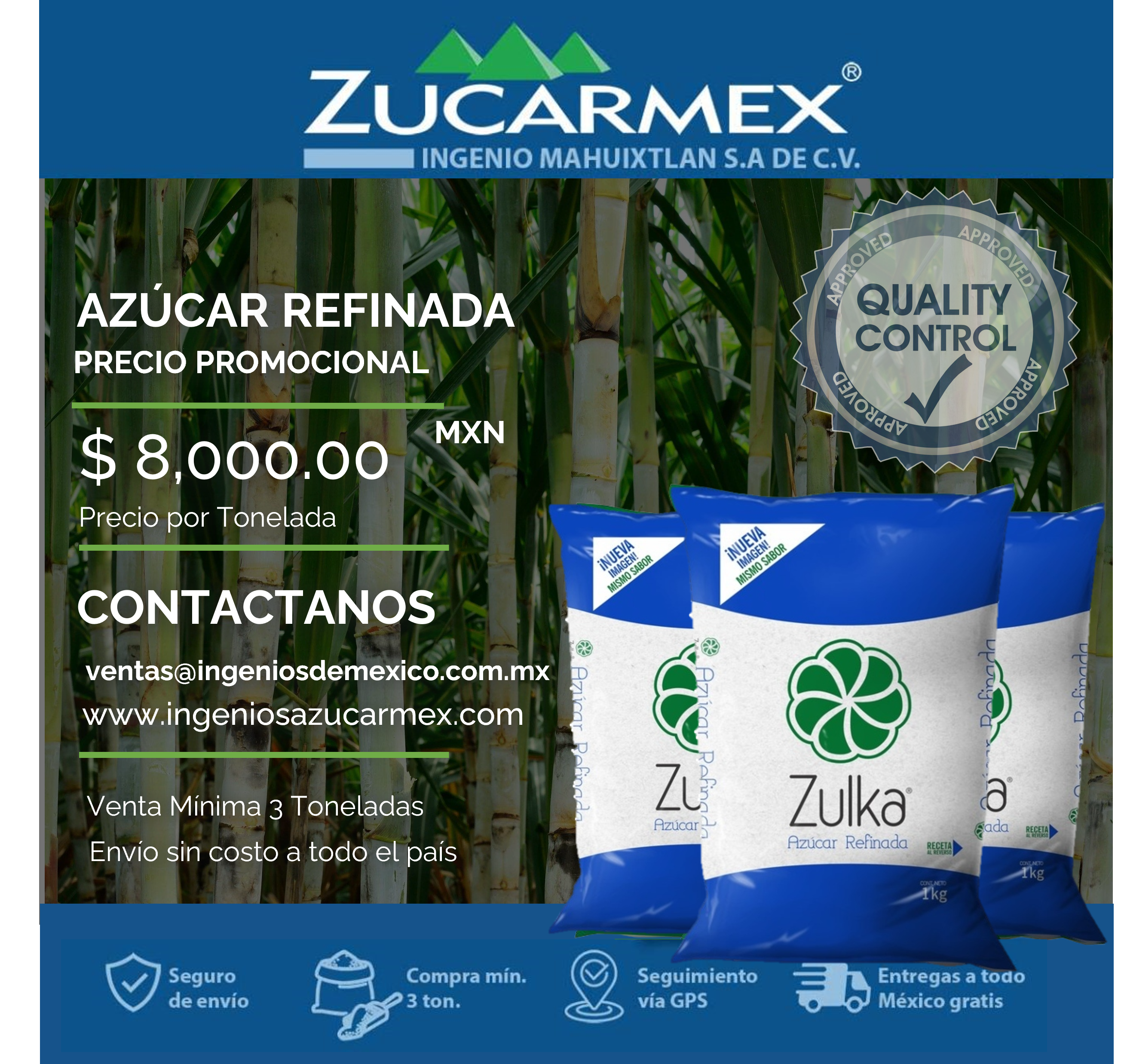 Azúcar Refinada $8,000.00MXN Ton.