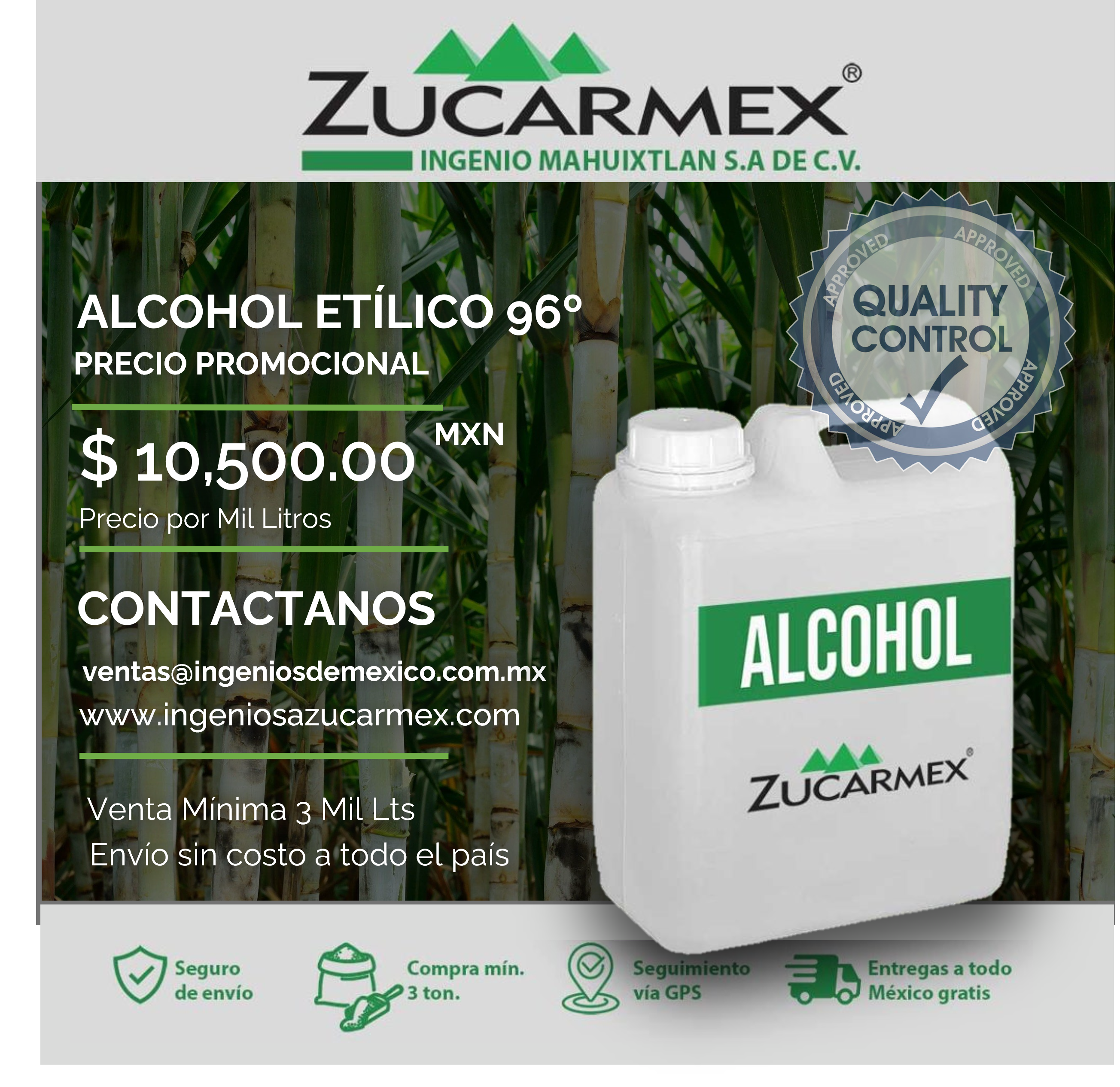 Alcohol Etílico $10,500.00MXN Ton.
